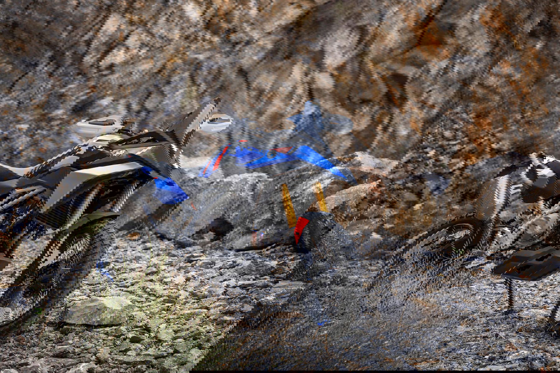 Das Fahrwerk orientiert sich an der großen R 1300 GS und setzt auf einen Stahl-Gitterrohrrahmen mit angeschraubtem Heckrahmen, einer Aluminium-Hinterradschwinge, einem zentralen Federbein und einer Upside-Down-Telegabel vorn. Die Radgrößen betragen 19 Zoll vorne und 17 Zoll hinten, der Radstand wurde mit 1.465 mm angegeben. Während das Concept-Bike noch Kreuzspeichenräder trug, sind im Serienmodell Gussräder verbaut – spürbar alltagstauglicher, aber weniger offroad-orientiert. Die Kreuzspeichenräder sollen als Option erhältlich sein.