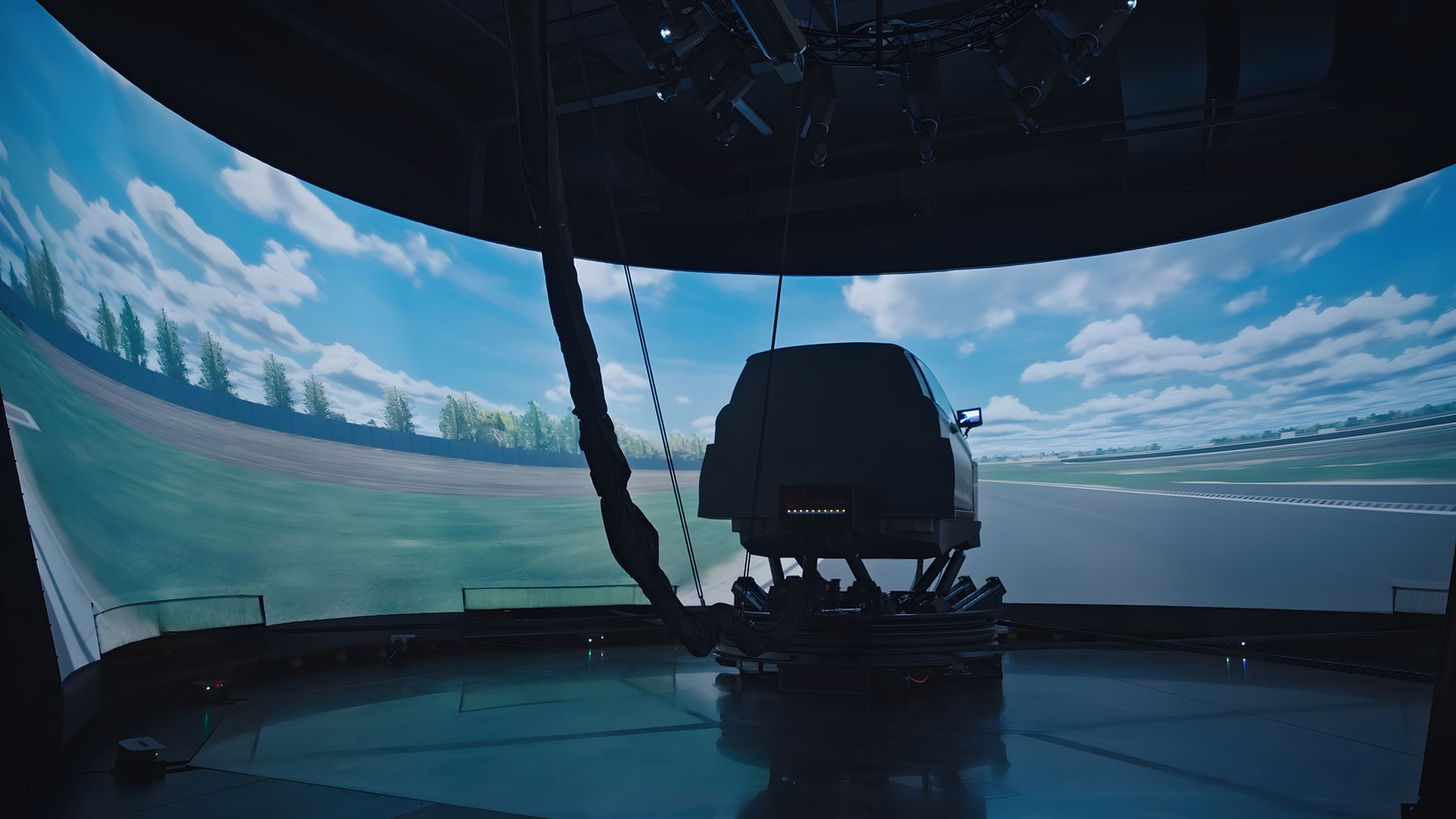 Bei dem neuen System handelt es sich um einen VI-grade DiM500 Driver-in-the-Loop-Simulator. Das Herzstück bildet eine große bewegliche Plattform mit einem Bewegungsradius von fünf Metern, kombiniert mit einem Cockpit aus Kohlefaser. Der Fahrer wird in eine realistische virtuelle Umgebung versetzt, die reale Fahrbedingungen nachbildet. Die Plattform kann dabei Kräfte reproduzieren, die denen bei physischen Tests entsprechen, was eine präzise Analyse des Reifenverhaltens ermöglicht.