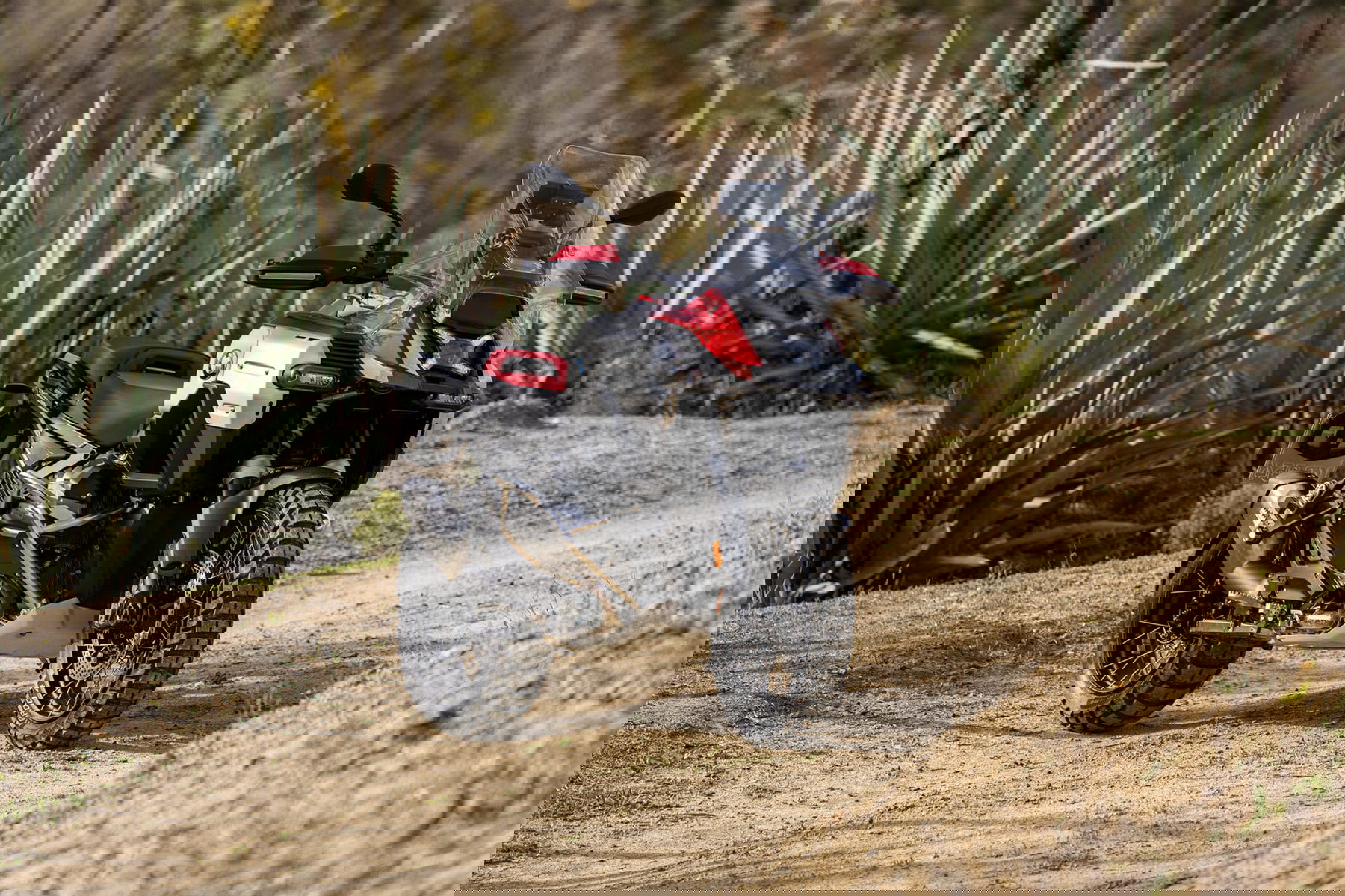 Der 30-Liter-Kraftstofftank aus Aluminium ist robust und bietet Befestigungsmöglichkeiten für Gepäckstücke. Der Wind- und Wetterschutz wird durch ein großes Windschild und Handschützer mit Erweiterungen unterstützt.
