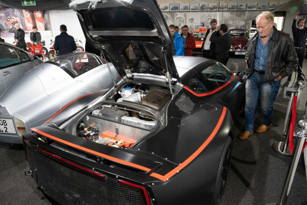 Das neueste Ausstellungsstück ist die VW-Studie XL-Sport. Das Konzept-Auto ist mit dem Motor der Panigale 1299 R von 2017 ausgestattet.