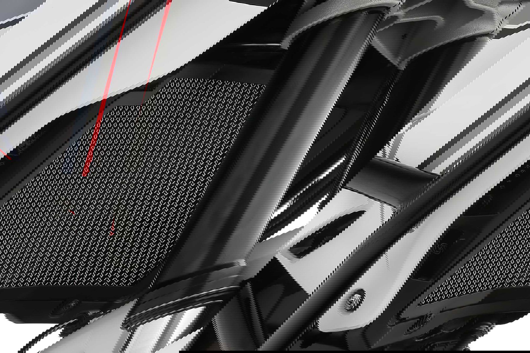 Die Installation des Wasserkühlerschutzes ist einfach und er wird mit einem Einbausatz geliefert. Die robuste Verbindungstechnik zwischen dem Gitter und dem Rahmen sorgt für eine sichere und stabile Befestigung. Das funktionale Design fügt sich nahtlos in das Erscheinungsbild der Ducati DesertX ein und unterstreicht die Offroad-Qualitäten des Motorrads.