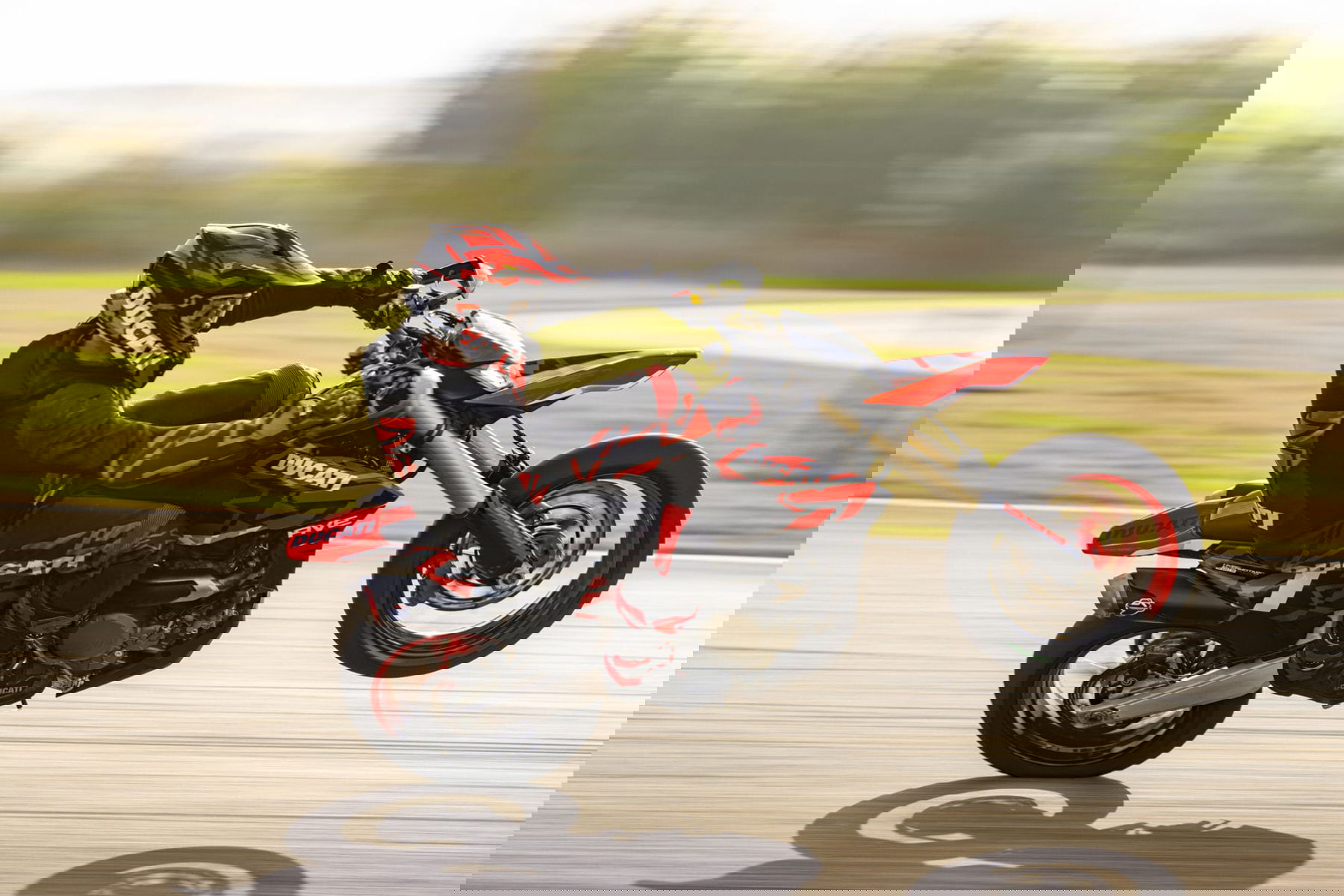 Die Wheelie Control kann in vier Stufen reguliert werden und bietet von kontrollierter Front-Radhebung bis hin zu maximaler Beschleunigung aus Kurven verschiedene Optionen.  Für die Nutzung auf der Rennstrecke ist zudem ein spezielles Ducati Performance-Softwarepaket für Wheelie Control erhältlich, das in Verbindung mit dem Termignoni-Rennauspuff die Durchführung von kontrollierten Wheelies über die Regulierung des Motordrehmoments erleichtert.