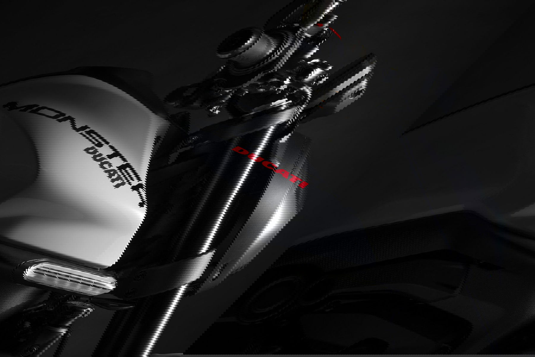Das moderne Design konzentriert sich auf das Wesentliche und hebt die charakteristischen Merkmale der Monster hervor. Während die Frontansicht des Motorrads von dem Voll-LED-Scheinwerfer charakterisiert wird, sieht man am im hinteren Bereich des Motorrads ein kurzes, geschwungenes Heck mit zwei lackierten Seitenteilen, die von der Panigale V4 inspiriert sind. In der Mitte befindet sich der unverwechselbare, geschwungene und muskulöse Kraftstofftank der Monster.