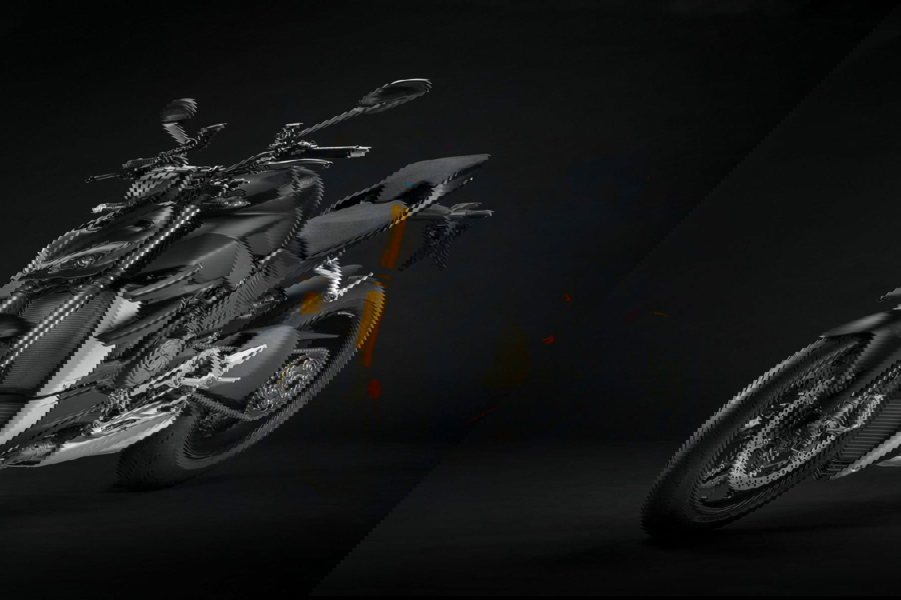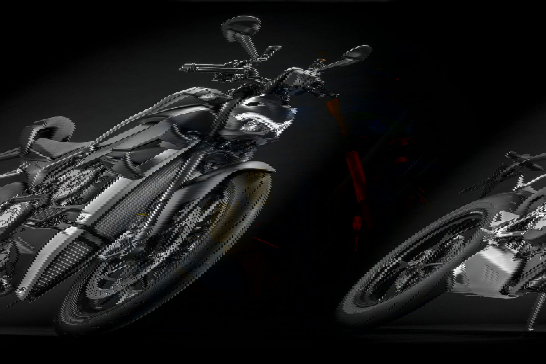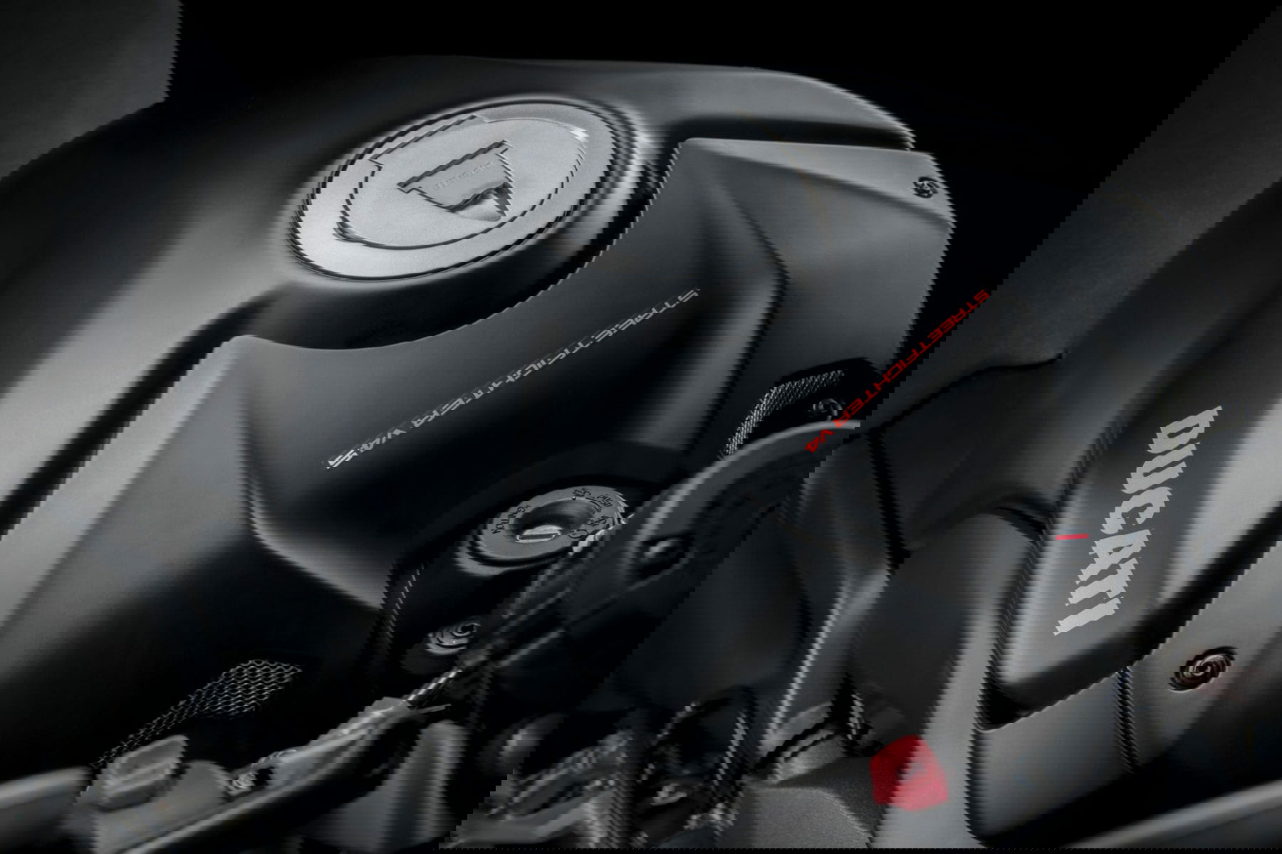 The friendly black complements the existing color variation Ducati Red, which will continue to be available. Dark Stealth is a matt black color that is intended to emphasize the aggressive side of the ultra-naaked bike.