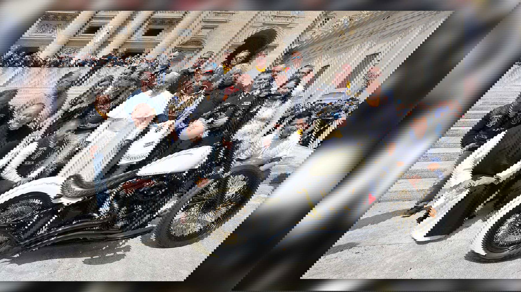 The “White Unique” was then driven (in July 2019) by the Jesus bikers to Rome and handed over to Pope Franziskus. He blessed the custom bike and signed it. The motorcycle is now auctioned for a charitable purpose. An orphanage and a school in Uganda should be built from the money.