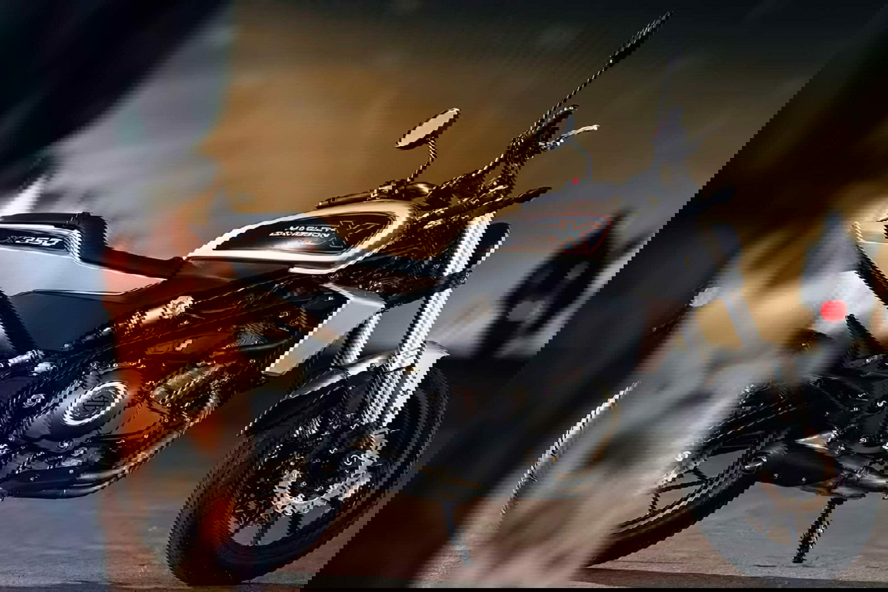 The X350 looks most similar to Harley-Davidson’s Sportster family and has flat-track elements to emphasize its sporty character. The motorcycle is available in three colors: Dazzling Black, Joyful Orange and Bright Silver.