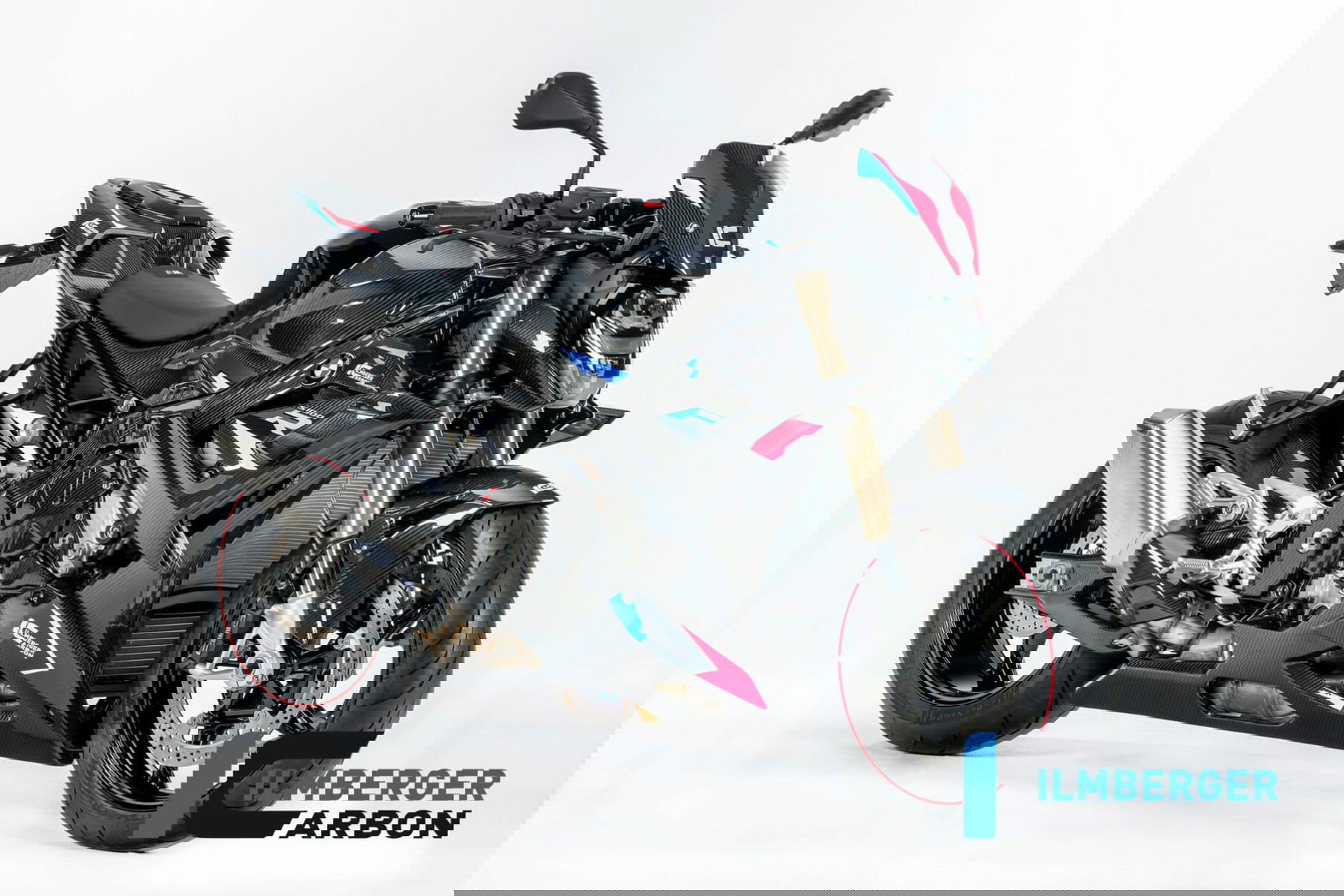 Ilmberger now has some carbon parts for the current BMW S 1000 R in their program. Pretty much everything that could be made from lightweight carbon fiber was mounted on a show bike, including winglets.