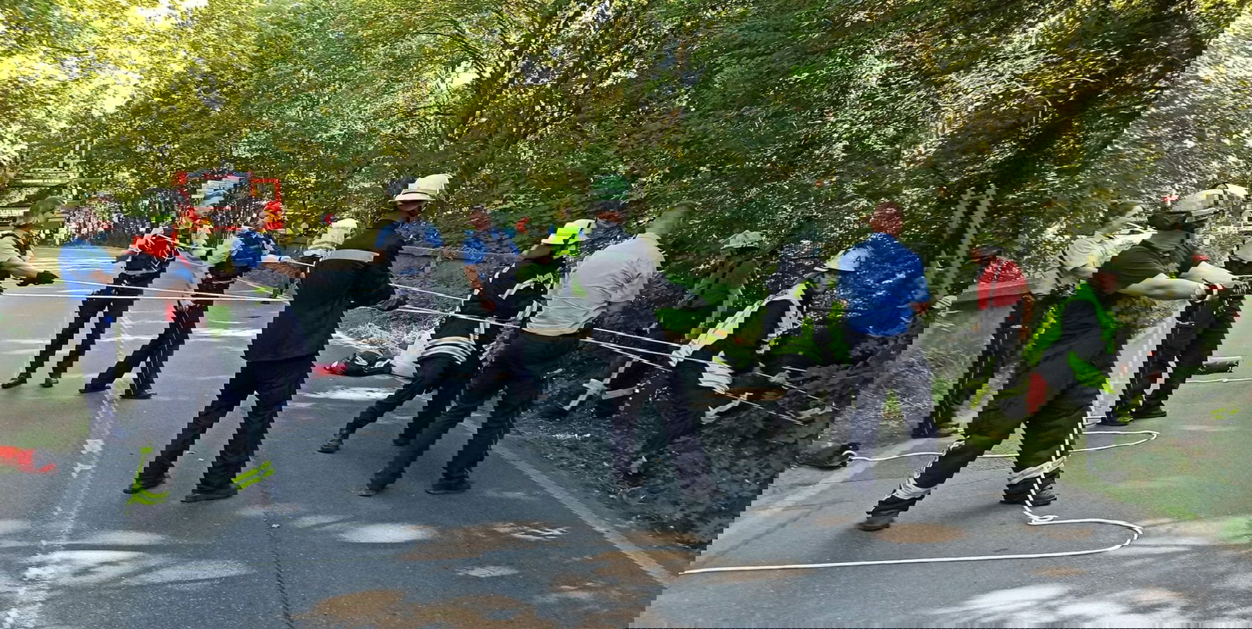 Die KTM hat den Unfall allerdings nicht überstanden. Polizei und Feuerwehr zogen die 125er Duke mit Seilen aus der Böschung.