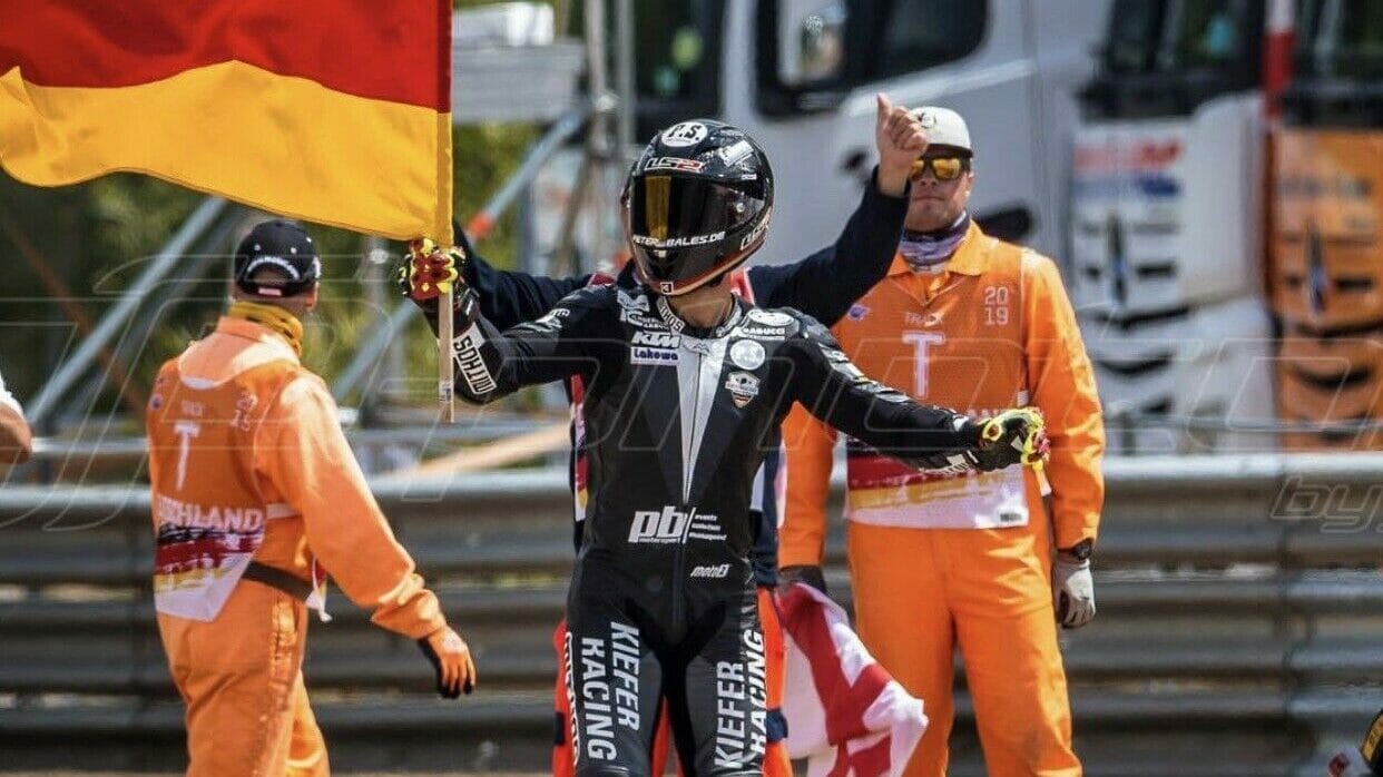 Moto2-Fahrer Lukas Tulovic #3 versteigert die Lederkobi, die er bei seinem ersten Heimrennen am Sachsenring trug. Mit den kompletten Einnahmen möchte er Kinderaugen zum Strahlen bringen. An welche Einrichtung das Geld gehen soll, oder was genau er mit dem Erlös aus der Auktion vorhat, wird allerdings nicht genauer beschrieben.