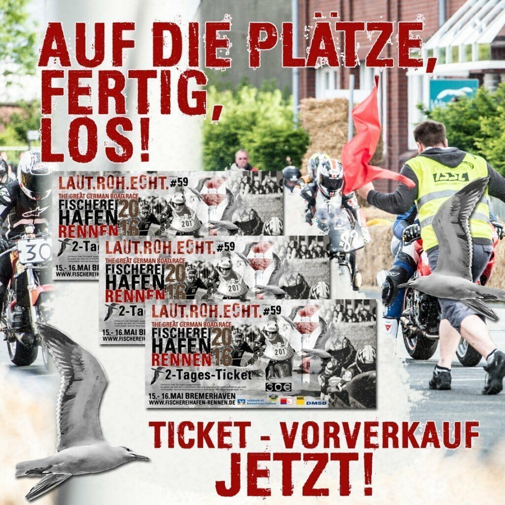 Laut, Roh, Echt heißt es am 15. und 16. Mai in Bremerhaven. The great German Road Race. Ein echtes Straßenrennen mit Traditon seit 1952. Klassische und aktuelle Rennmaschinen, Super Bikes mit über 200 PS und spektakuläre Renngespanne fahren auf dem 2,7 km langen Kurs durch den Fischereihafen. Diese Veranstaltung ist Kult!