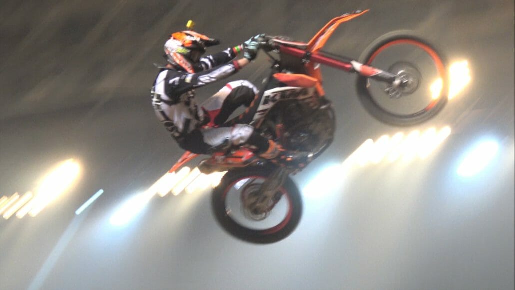 Vor den Finalläufen gab es noch zwei Sondershows. Massimo Bianconcini zeigte, dass Stunts auch auf einem 250 kg schweren und 160 Ps starkem Skidoo möglich sind.